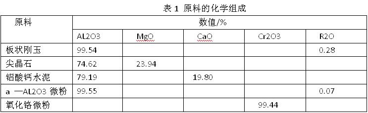 目前在耐火材料相關(guān)專業(yè)公開的兩種可以顯著降低澆注料加水量的技術(shù)① 安邁的大骨料技術(shù),通過增大骨料粒度、減少基質(zhì)量達(dá)到降低加水量的目的,該技術(shù)只適用于大尺寸制品②VSV 的新型澆注技術(shù),骨料粒度不變,通過增加顆粒量、減少基質(zhì)量達(dá)到減水的目的,并在諸多澆注料中得到應(yīng)用。降低澆注料加水量來改善其使用性能,是耐火澆注料新技術(shù)的追求,更是提高產(chǎn)品水化強(qiáng)度的成績。 開發(fā)一種大幅度降低澆注料加水量的技術(shù)。與上述技術(shù)不同,本技術(shù)不改變骨料與細(xì)粉的比例,僅通過優(yōu)化澆注料的粒度分布、原料組成,并對生產(chǎn)工藝進(jìn)行調(diào)整來達(dá)到減水目的。采用本技術(shù)生產(chǎn)的新型致密高強(qiáng)剛玉—尖晶石澆注料的加水質(zhì)量分?jǐn)?shù)僅為2.5%~3.0%(常規(guī)技術(shù)生產(chǎn)的ULC剛玉尖晶石澆注料的加水質(zhì)量分?jǐn)?shù)為4.0%~4.5%),因而其致密度、強(qiáng)度大幅提高,用其生產(chǎn)的透氣磚的使用壽命大幅提升。 1試驗(yàn):本試驗(yàn)中所用主要原料及其化學(xué)組成見下表1