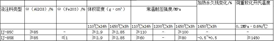 表6爐底用高鋁質(zhì)耐火澆注料性能指標(biāo)