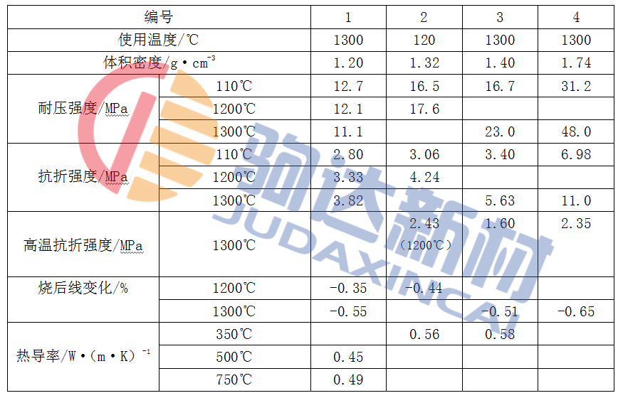 表1-3 高強(qiáng)多孔熟澆注料的性能
