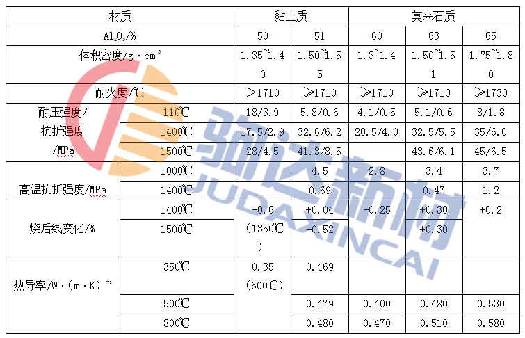 表1-1 高溫多孔熟料澆注料的性能