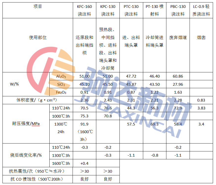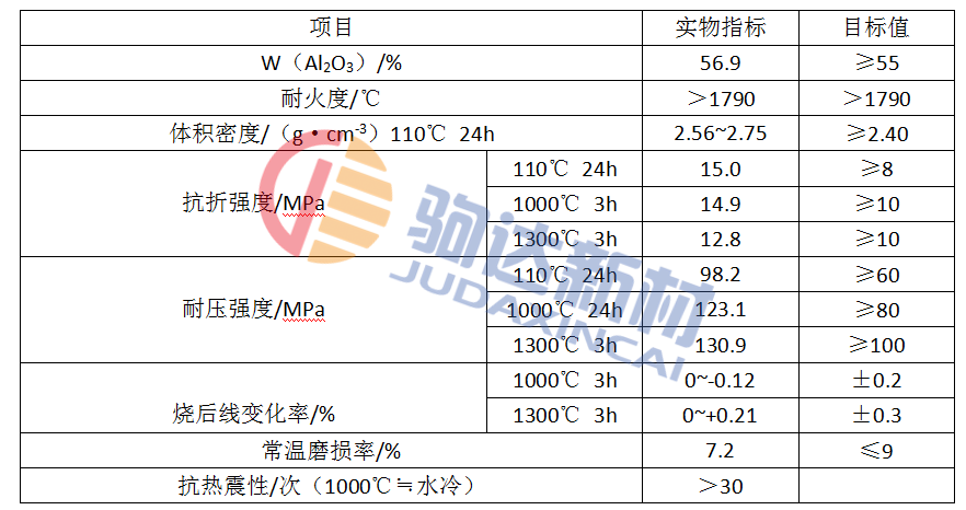 1 直接還原煉鐵回轉(zhuǎn)窯用澆注料的性能