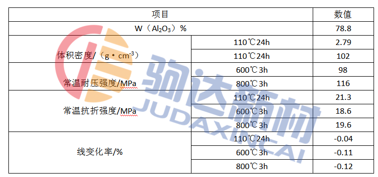 表1為所研制的鉛鋅流槽用低水泥高鋁澆注料的理化指標(biāo)。