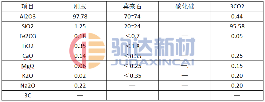 試驗所用的合成莫來石、剛玉、氧化硅微粉和碳化硅的化學(xué)組成列于表1。