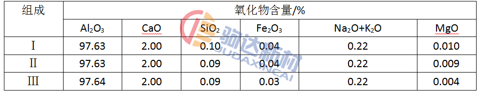 表1 剛玉質(zhì)澆注料的計(jì)算化學(xué)成分