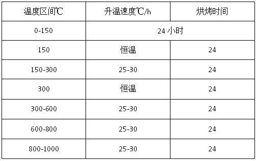 耐火澆注料的烘爐曲線主要是依據(jù)窯爐結(jié)構(gòu)、耐火澆注料性能、內(nèi)襯厚度以及用水量來設(shè)定。中間包主要有矩形中間包和三角形中間包,其中應(yīng)用較為廣泛的是矩形中間包,矩形中間包永久層采用的耐火澆注料一般為高鋁耐火澆注料和莫來石自流澆注料。具體的中間包烘爐方案如下: