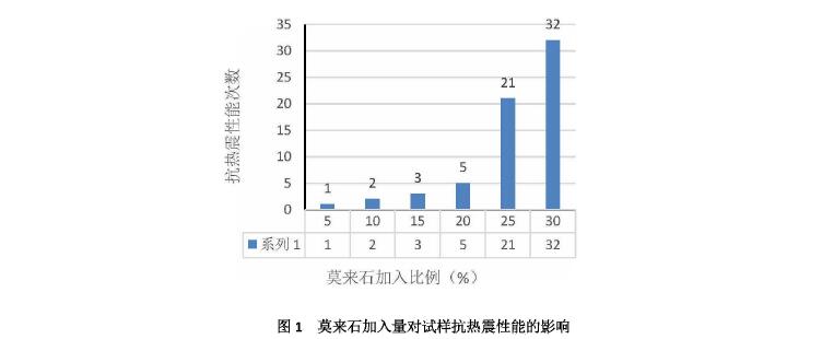 (2)莫來石的加入量在20%以下時,制品的抗熱震性能提升緩慢,對實際應(yīng)用意義不大。莫來石加入量過多,抗熱震性能雖然會進(jìn)一步提高,但其它物理性能則會下降,綜合考慮,莫來石加入量為25%~30%,制品的體積密度,顯氣孔率,耐壓強度適中,抗熱震性良好,各項指標(biāo)均能滿足使用。