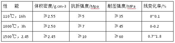 根據(jù)以上的檢測結果分析得出沾渣原因主要是因為耐火材料中的AL2O3、Fe2O3、SiO2與渣中的AL2O3、CaO、SiO2等成分發(fā)生反應生成一些低熔點的特質黏附在耐火材料的表面,通過調整耐火材料的組成和降低耐火材料的氣孔率可減少沾渣。另一方面可以從減少鐵水包的溫降著手。為此在實驗室選用河南當?shù)氐亩壍\土熟料做骨料,加入部分Sic及2%左右的Cr2O3進行反復試驗。研制的耐火澆注料的化學組成(%):AL2O3≥65,SiO2≥25, SiC ≥9,Cr2O3≤2,CaO ≤1,物理性能見表3.